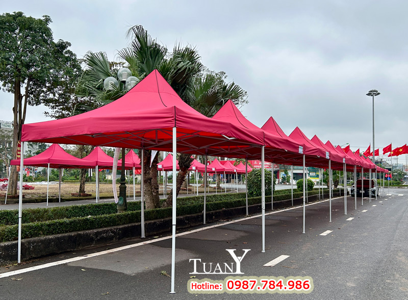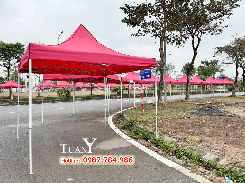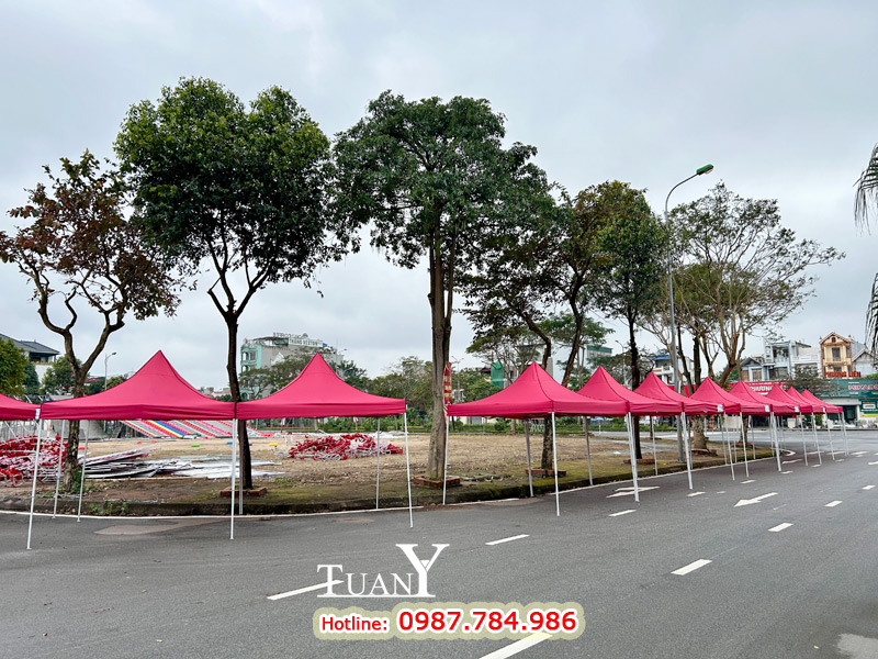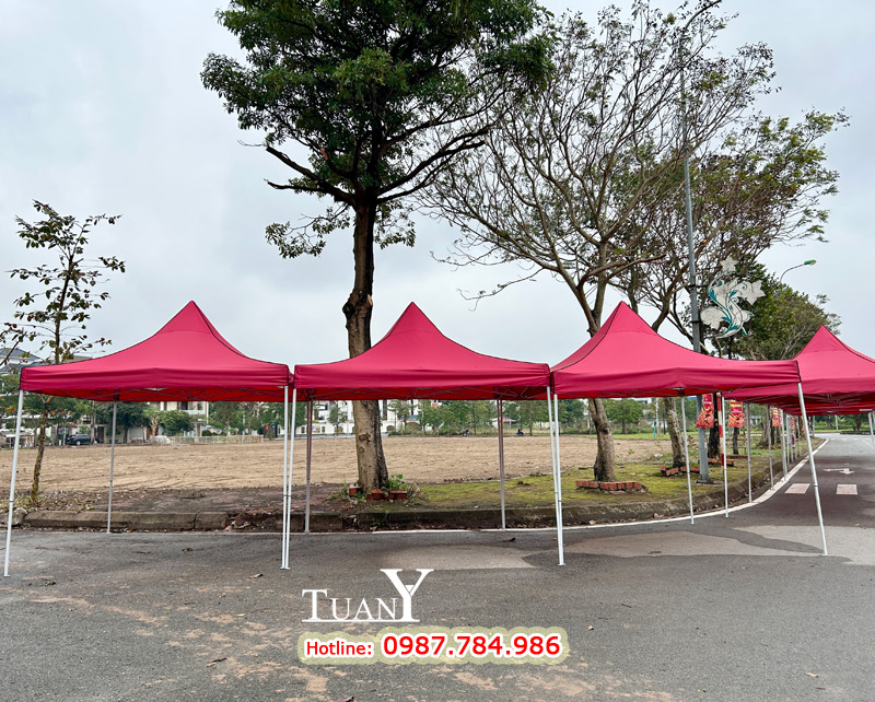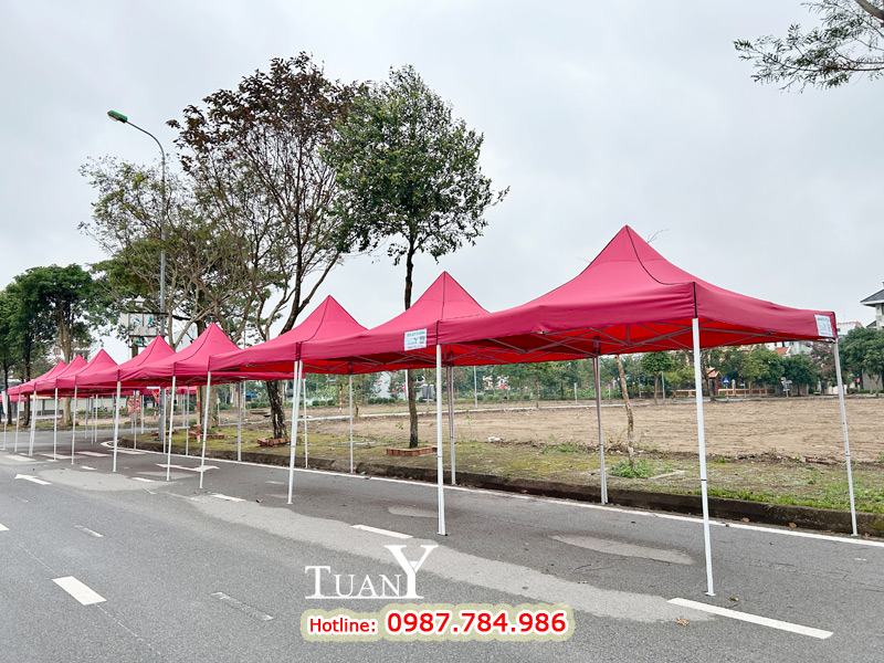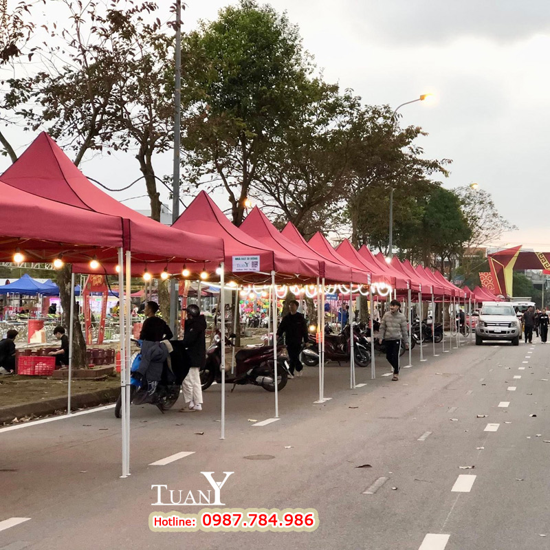 Những bộ Nhà bạt 3mx3m khi dựng lên tạo thành gian hàng 9m2 - Kích thước của gian hàng hội chợ tiêu chuẩn, bạt mái màu đỏ nổi bật trên khu phố chắc chắn sẽ thu hút rất nhiều khách hàng.