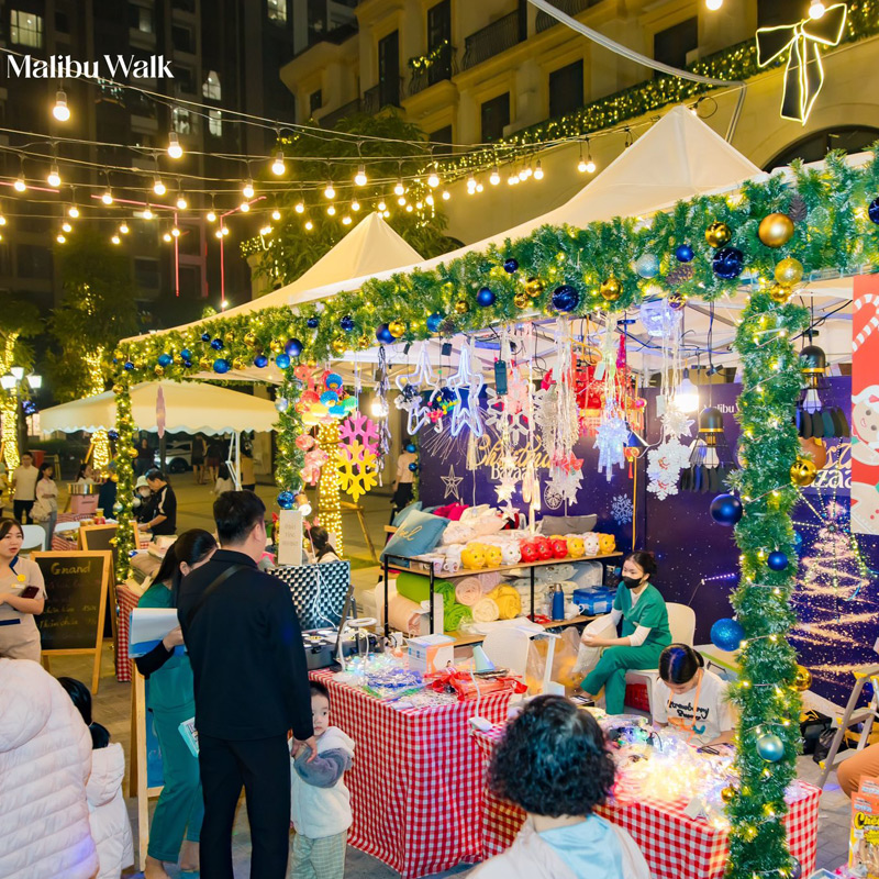 Những chiếc Nhà bạt 3mx3m MK3 được dựng lên và trang trí tạo thành những gian hàng sinh động chuẩn bị cho Chợ phiên Giáng Sinh tại Malibu Walk - Trung tâm giải trí mua sắm sầm uất nhất Hà Nội tại Vinhomes Ocean Park 1 Gia Lâm Hà Nội.