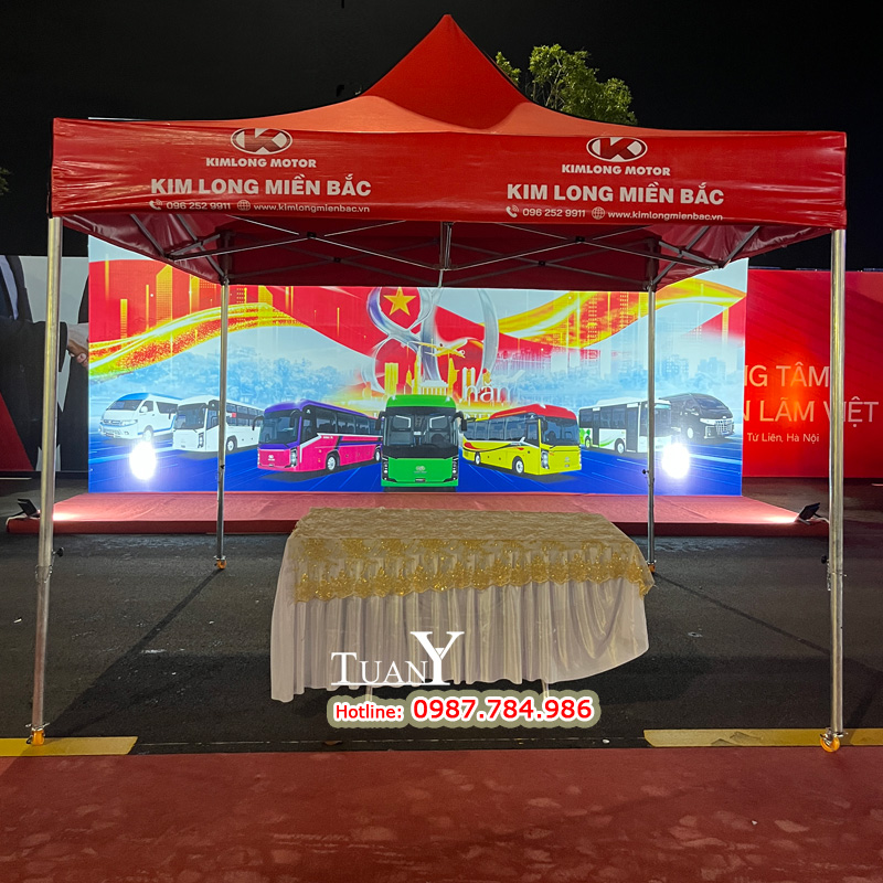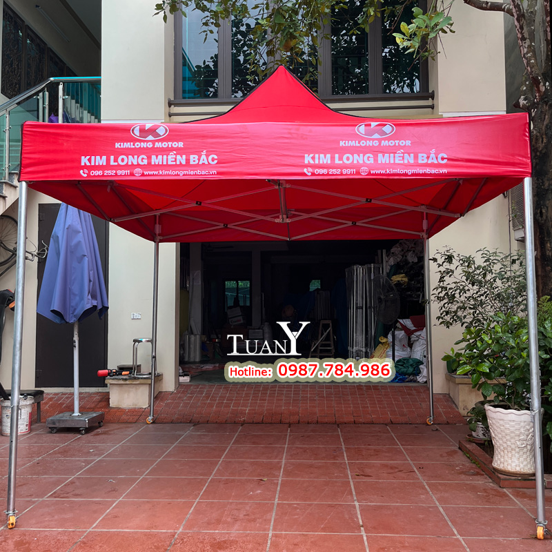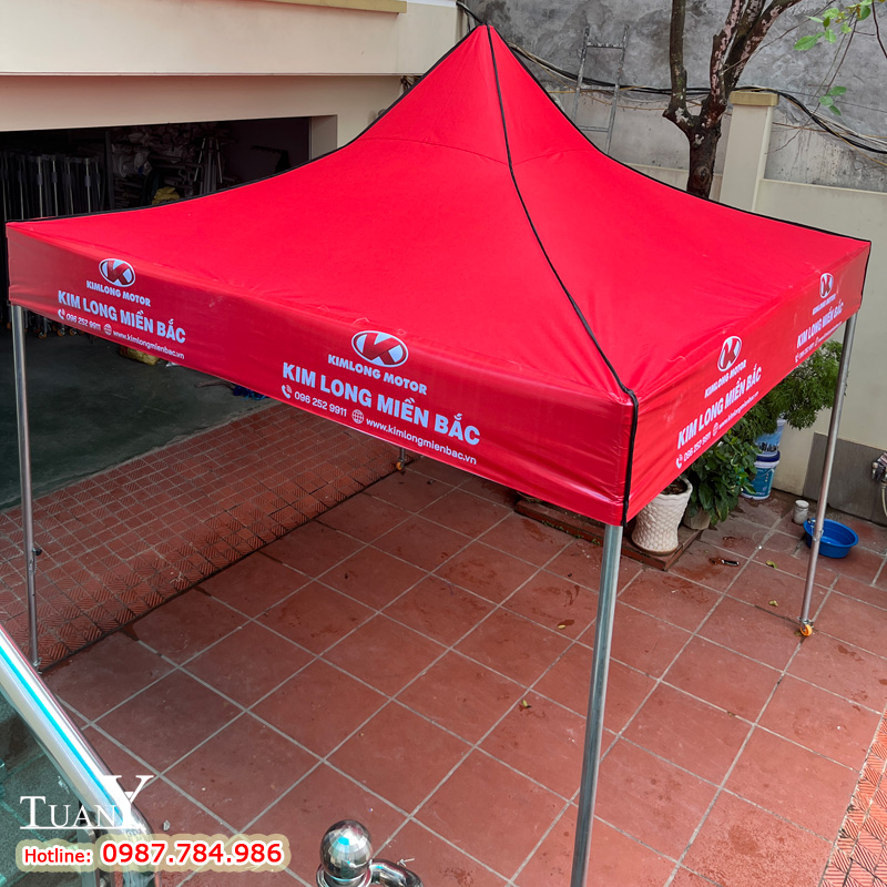 Hình ảnh các bạn xem trong là Nhà bạt 3mx3m MK3, in ấn giới thiệu thương hiệu KIM LONG MIỀN BẮC! Nhà bạt loại chân trụ tròn, khung thép mạ kẽm dày dặn rất chắc chắn, có bánh xe di chuyển, lắp dựng ở bất kỳ vị trí nào tùy thích.