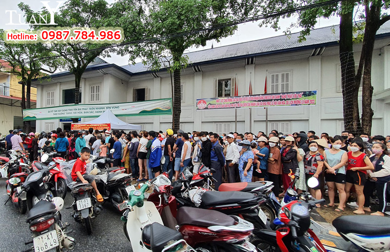 Từ sáng sớm ngày 24/9/2022 rất đông du khách và đồng bào xếp hàng nhận vé miễn phí tham dự sự kiện Lễ vinh danh Nghệ thuật Xòe Thái tại Sân vận động thị xã Nghĩa Lộ - Yên Bái.
