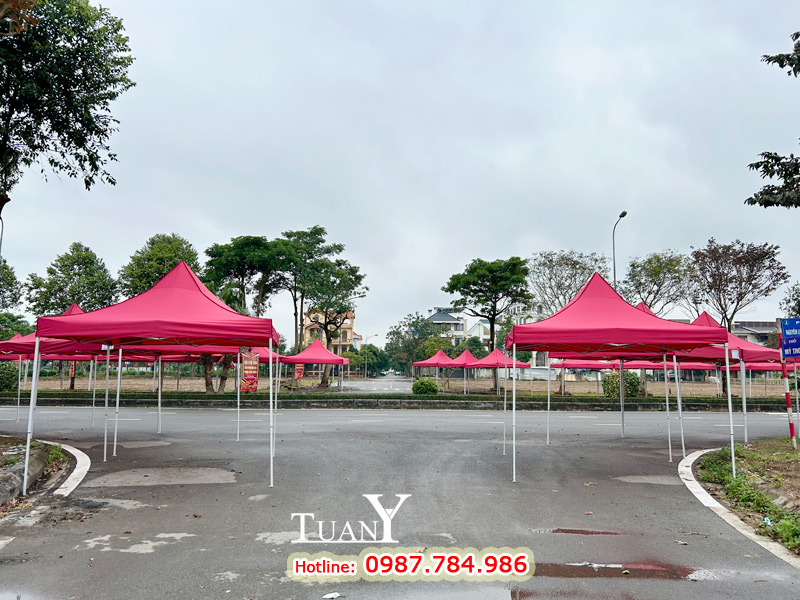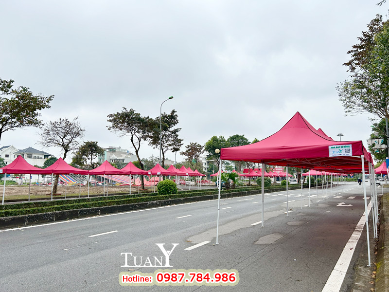 Những bộ Nhà bạt 3mx3m khi dựng lên tạo thành gian hàng 9m2 - Kích thước của gian hàng hội chợ tiêu chuẩn, bạt mái màu đỏ nổi bật trên khu phố chắc chắn sẽ thu hút rất nhiều khách hàng.