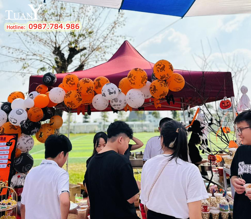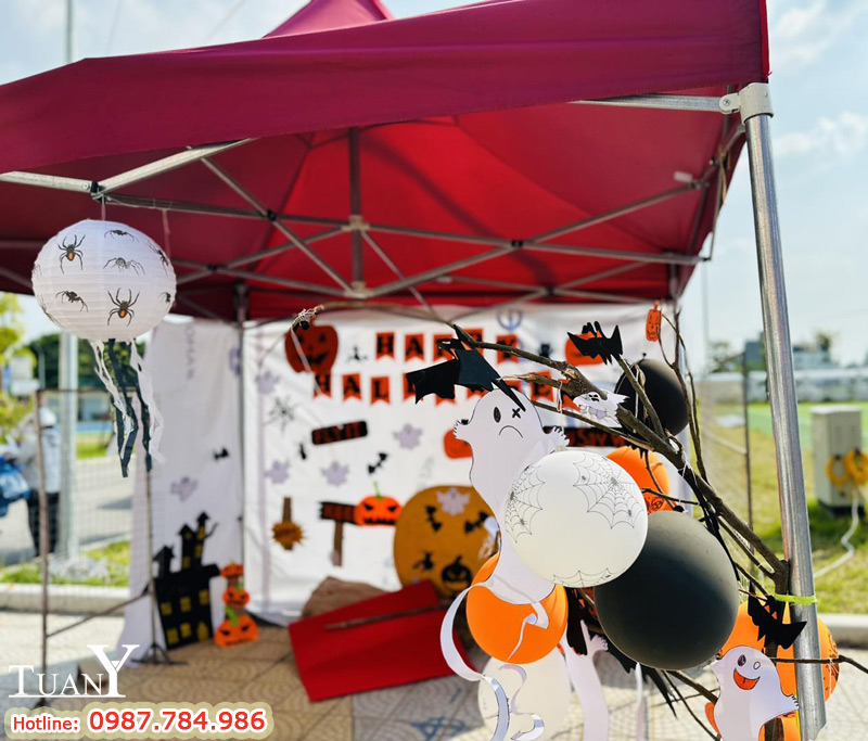 Hình ảnh Nhà bạt 3mx3m MK3 được trang trí tạo nên những gian hàng đặc trưng ma quỹ nhưng đầy sôi động