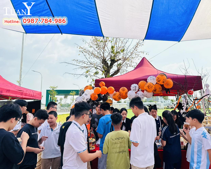 Những gian hàng sôi động sử dụng Nhà bạt 3mx3m MK3 do Tuấn Ý sản xuất góp phần tạo nên sự kiện trường học như Hội chợ Xuân, Lễ Hội Ma Halloween, cắm trại dã ngoại ngoài trời thi đua trang trí nhà cửa, bán hàng gây quỹ từ thiện... thật vui và nhiều ý nghĩa dành cho thầy cô giáo và các em học sinh tại Trường Phổ thông Liên cấp Newton Vĩnh Phúc.