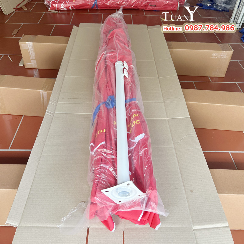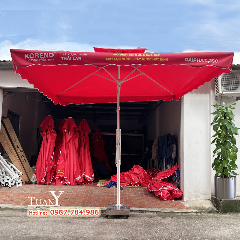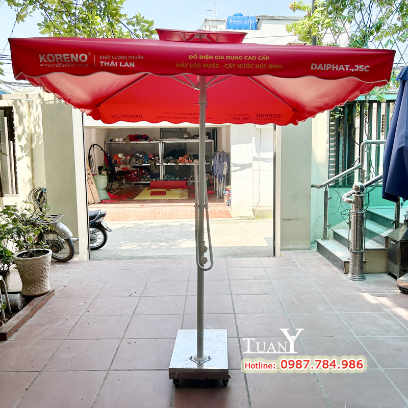 Ô lệch tâm vuông 2,5m mái màu đỏ, in ấn theo yêu cầu khách hàng