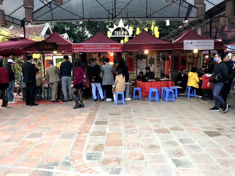 Hơn 50 gian nhà Thầy Đồ sử dụng nhà bạt di động 2mx2m được dựng lên chào mừng Xuân Canh Tý 2020, tại Hồ Văn thuộc Khu di tích Văn Miếu - Quốc Tử Giám, thể hiện nét đẹp văn hóa Hội chữ Xuân "Xin chữ - Cho chữ" với tinh thần hiếu học, hiếu nghĩa của người dân.